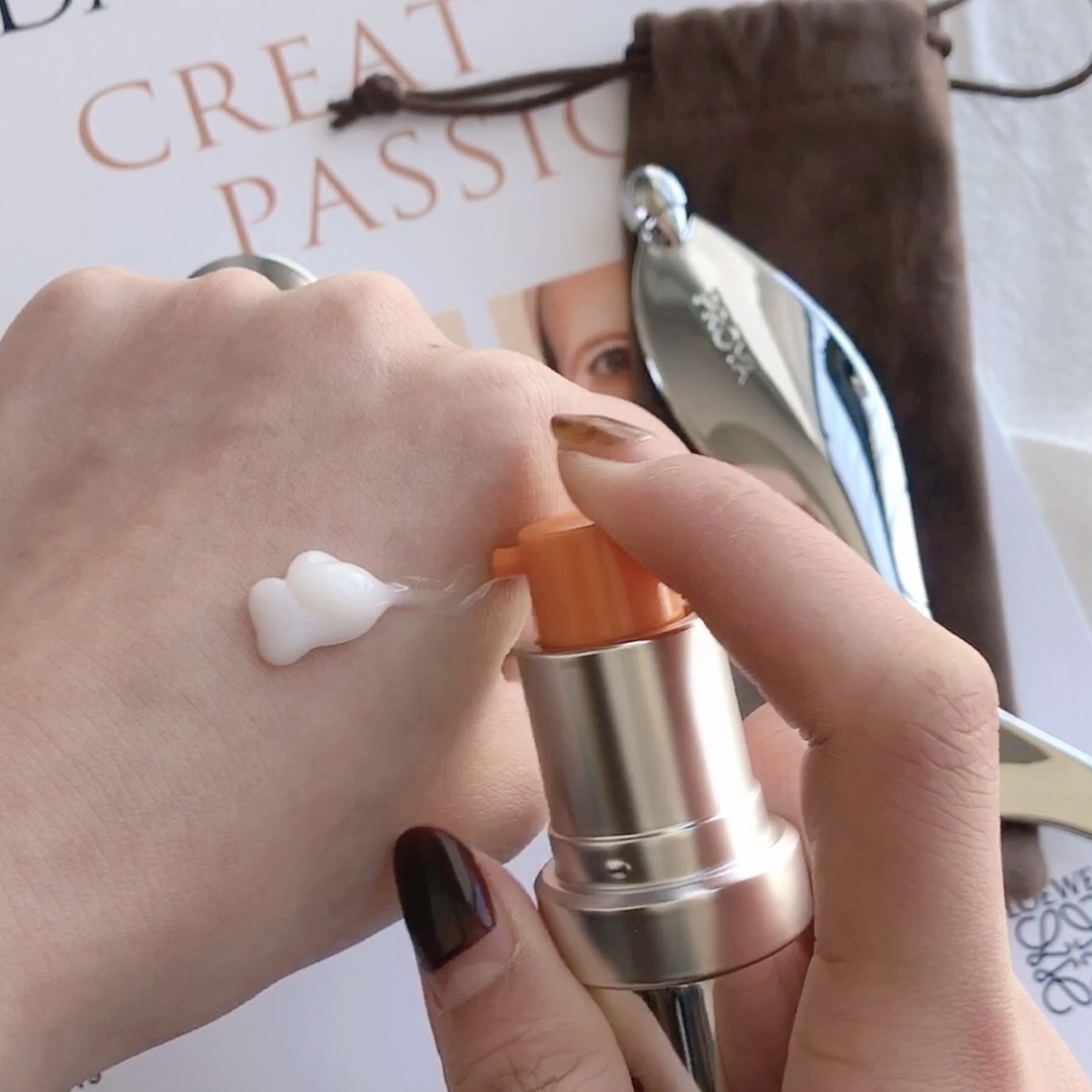 1、、、用无名指指尖取适量眼霜,,,,点按于上下眼睑处;